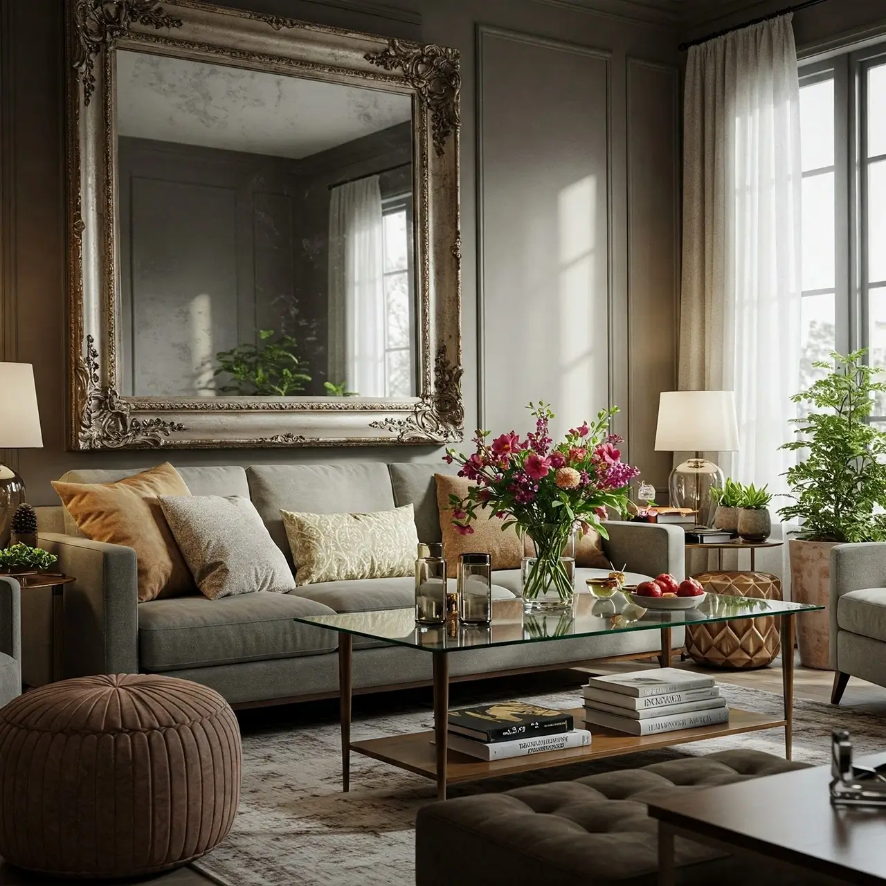 • Aynalar: Özellikle dar alanlarda, büyük aynalar kullanmak mekanı geniş gösterir. Aynaların yerleştirilmesi de önemli; genellikle göz hizasında ya da odanın merkezine yerleştirilmelidir.